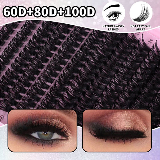 Eyelash Clusters 60D+80D+100D Manga Spikey D Curl Wispy Individual Lashes 576PCS 10-16MM-8HJ9