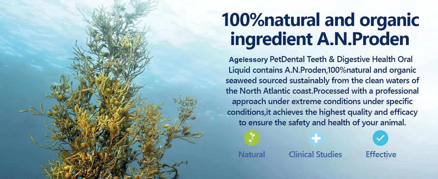 Agelessoryยฎ Oral Liquid for the dental and digestive health of pets ensures a thorough and clean feeling in the mouth.