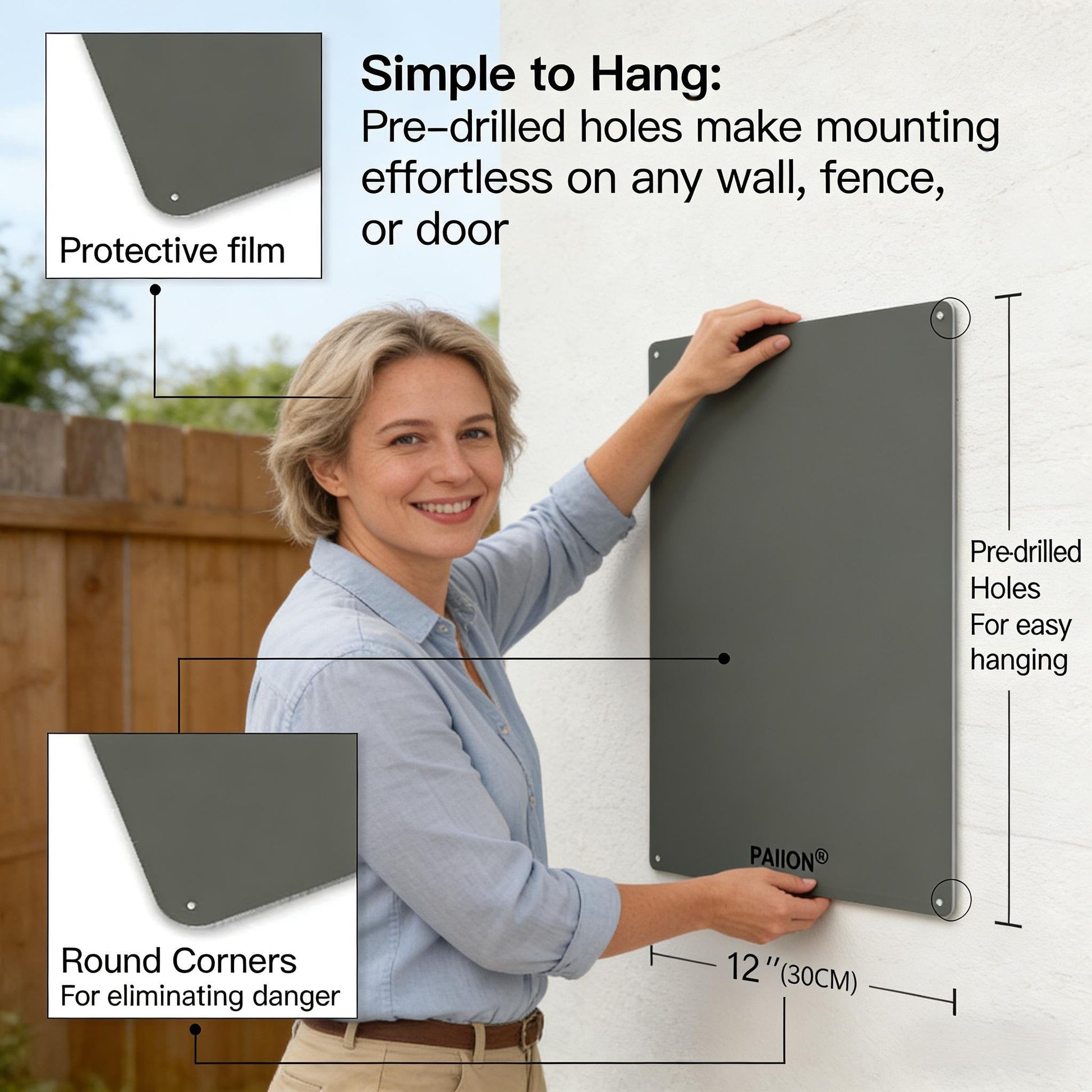 Simple to Hang: Pre-drilled holes make mounting effortless on any wall, fence, or door.