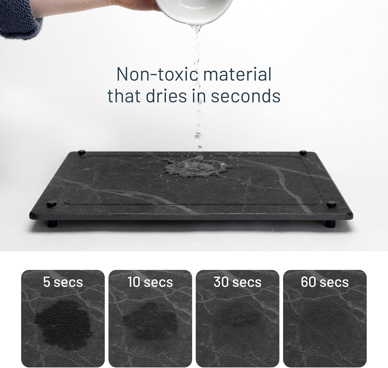 Keeps countertops dry and clean within minutes.